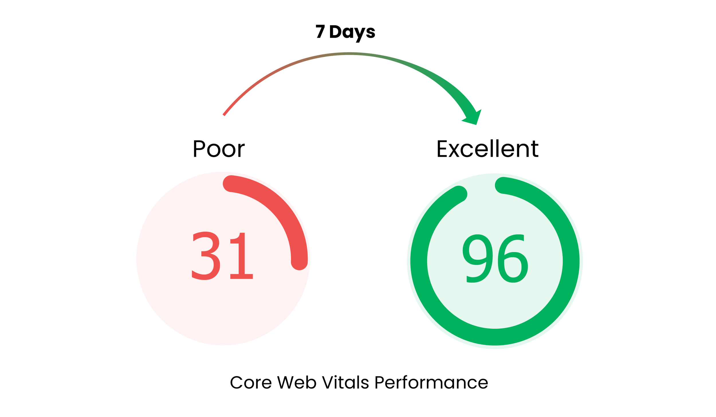 Increase your Core Web Vitals score to 85+ in 7 days or less. Guaranteed.